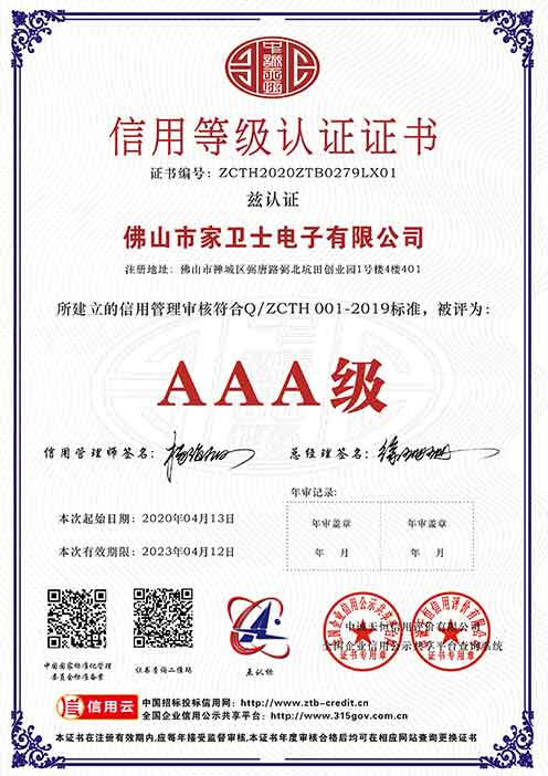 3A级信用等级认证