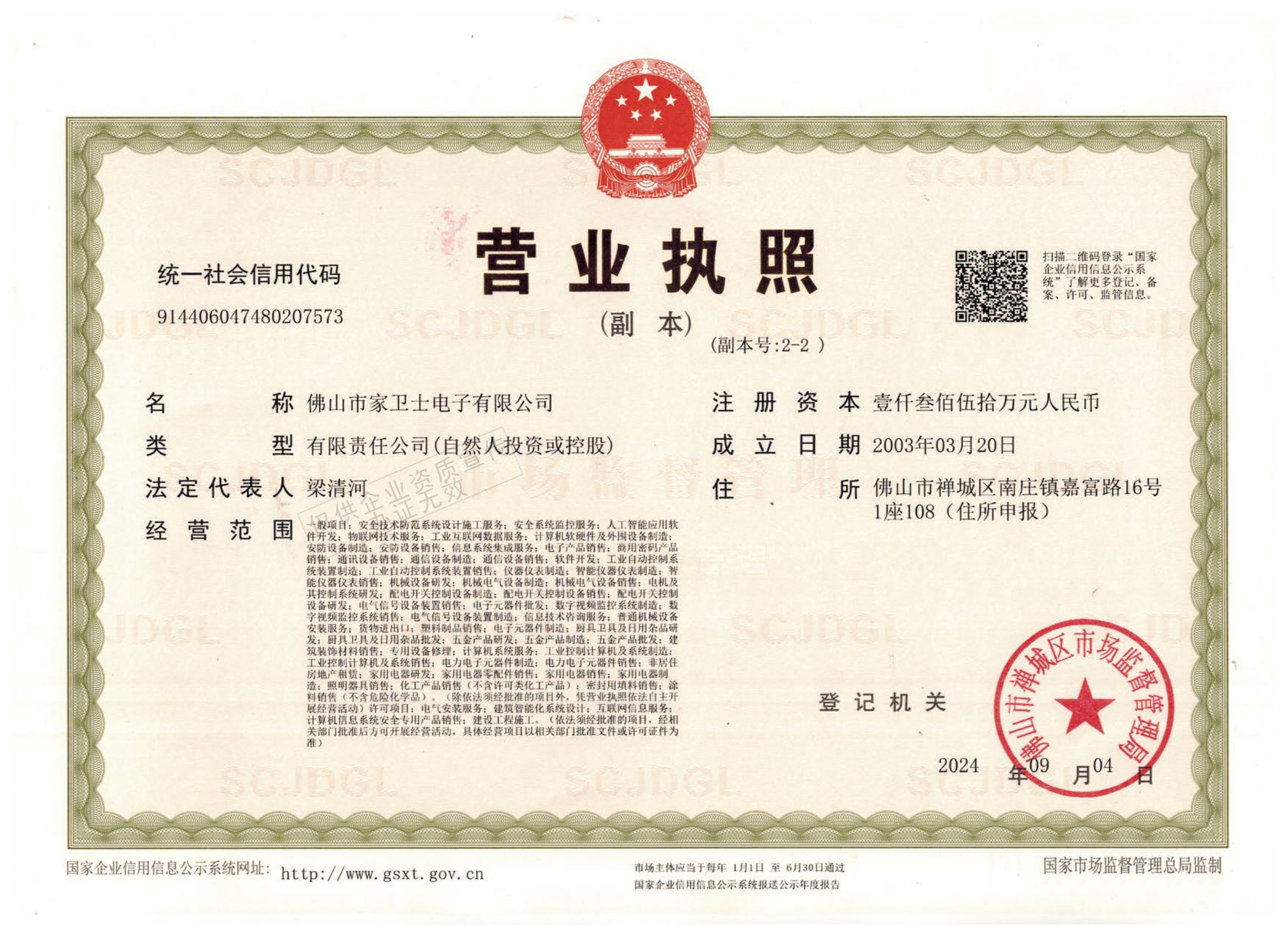 家卫士营业执照
