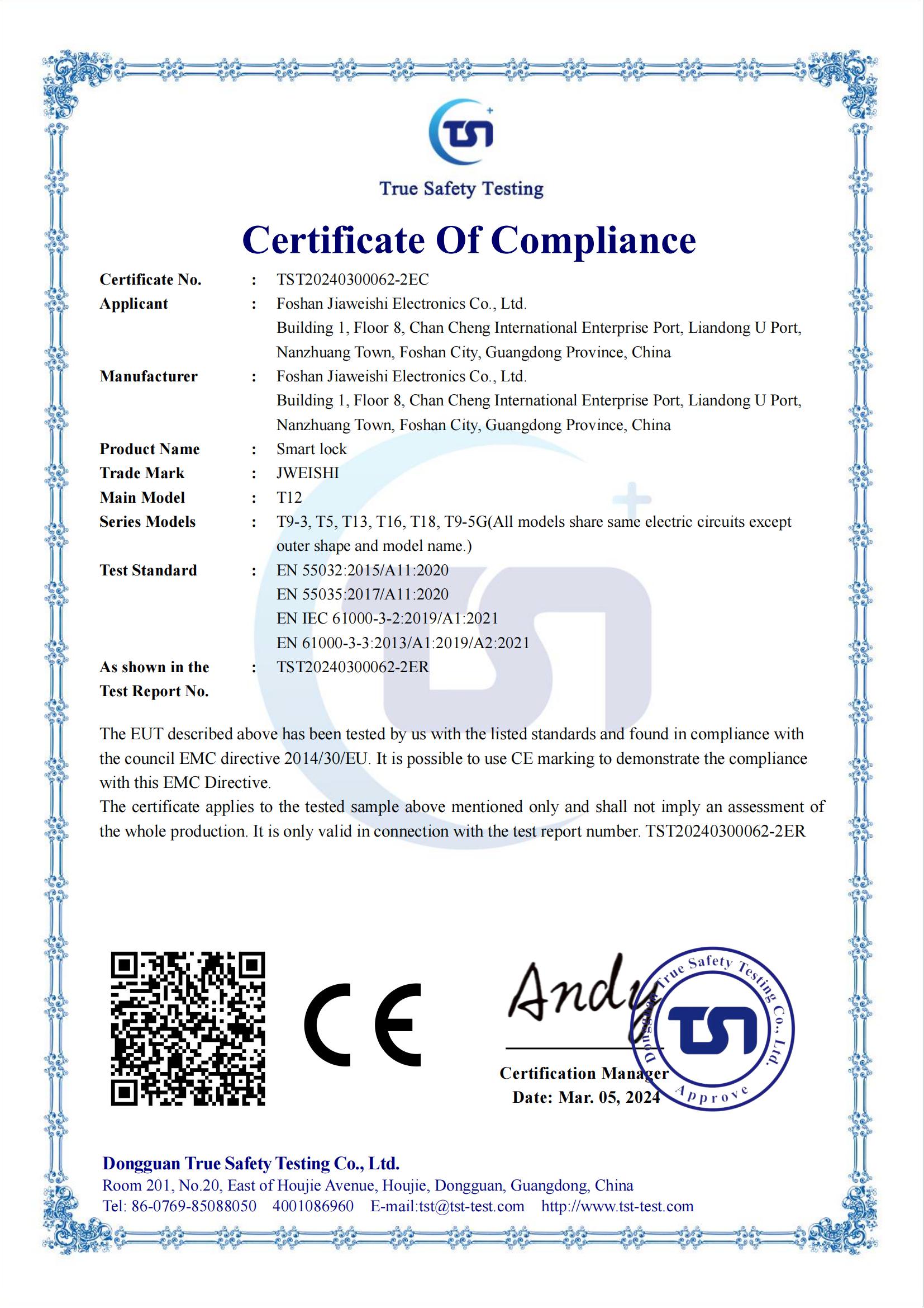 CE指纹锁认证